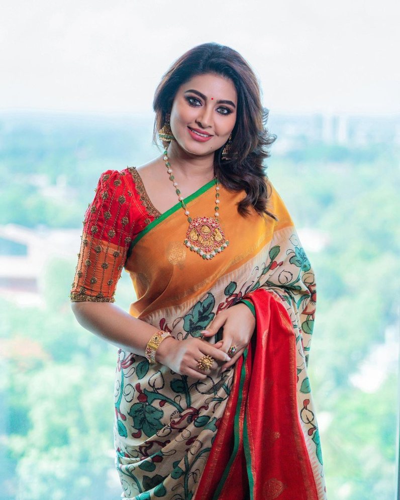 The post Sneha Prasanna chooses a kalamkari saree to inaugurate a shop! appeared first on South India Fashion.